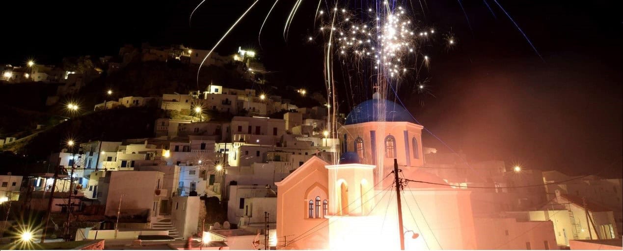 On Good Friday, you’ll experience the epitaph procession in a deeply atmospheric setting. The epitaphs are decorated with flowers, and the procession moves through narrow alleys. In Chora, they meet at the Windmills.🔥 Multiple Resurrection Celebrations
